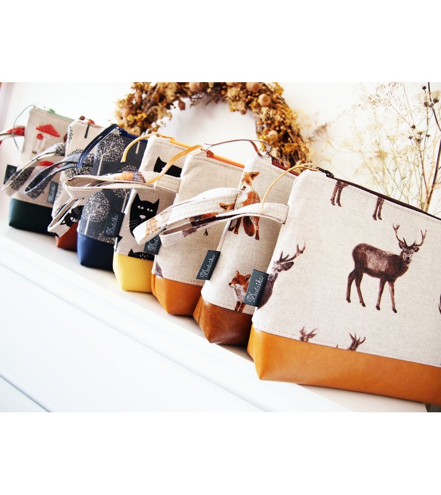 Veľká kozmetická/toaletná taška z bavlnenej látky, štruktúrou podobnou ľanu, v kombinácií s koženkou. Vhodná ako cestovná taška na kozmetiku, do ktorej pohodlne uložíte deodorant, krém, šampón a pod.+ drobnú kozmetiku.